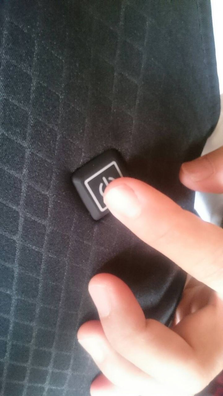 ▲⑬左ポケットにUSBコードが付いていますので、これにモバイルバッテリーを接続します。