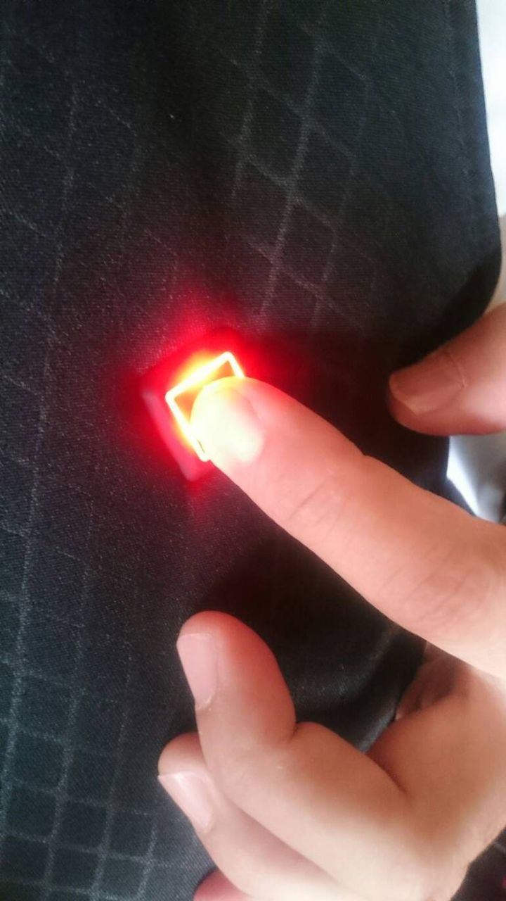 (写真:旨の部分にスイッチ兼温度インジケーターが輝きます。
