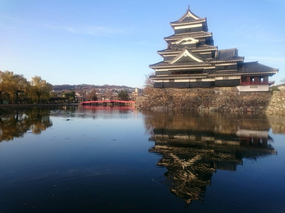 (写真:別名「烏城(からすじょう)」と呼ばれ黒メインの外壁が美しい国宝「松本城」)