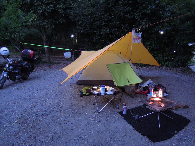 焚き火ができないのでは仕方がありませんので、近くの「八曾モミの木キャンプ場」でテントを張る事といたしました。