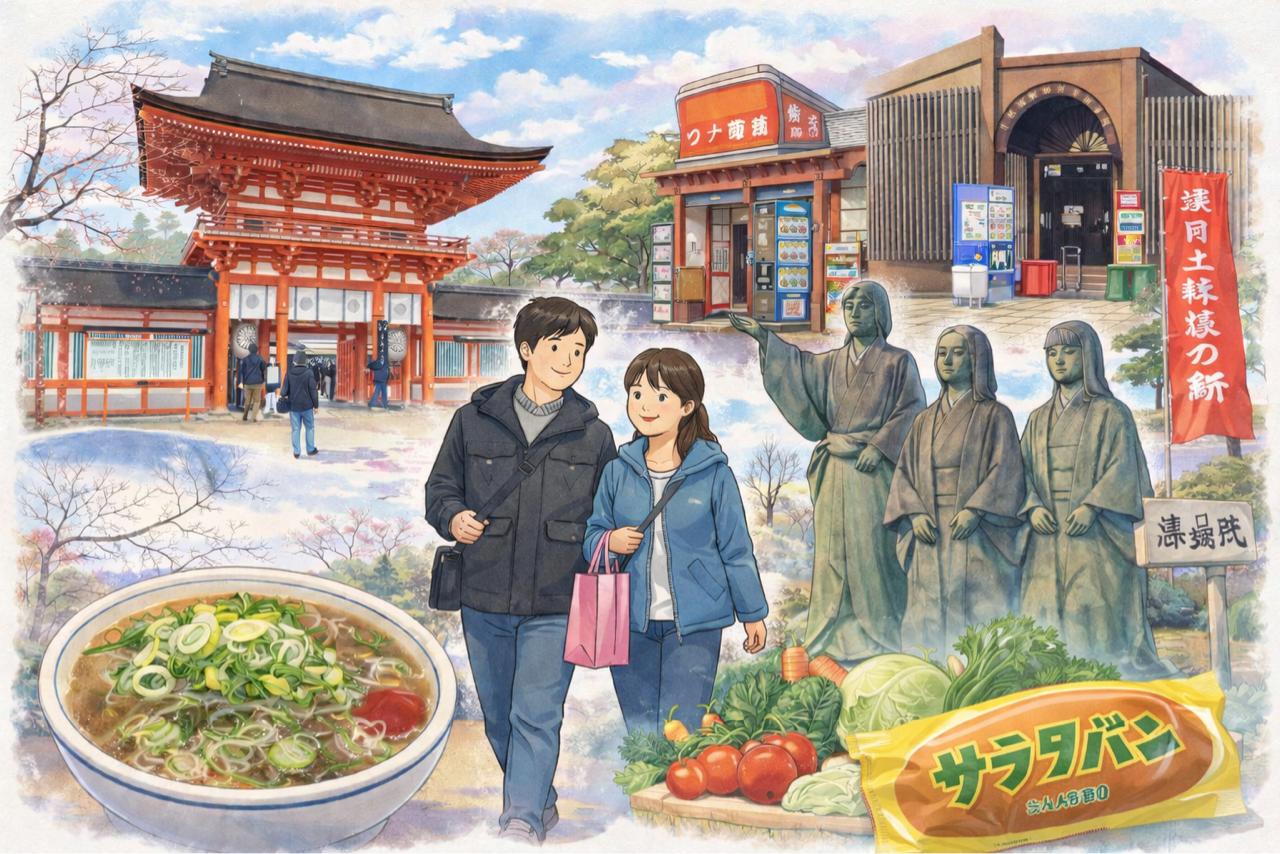 途中の昼食は、私の大好きなラーメン藤 五条通り店。 最後は名物のサラダパンをお土産に購入し、心もお腹も満たされる旅となりました。