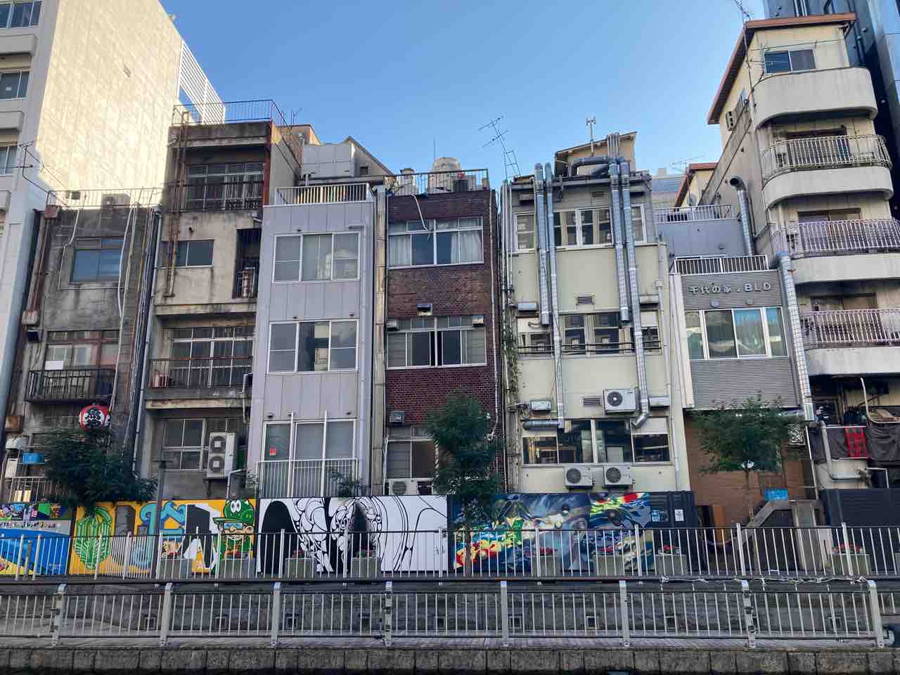 繁華街を川岸から