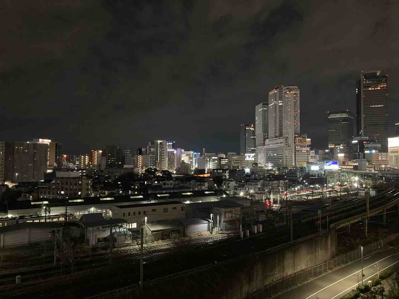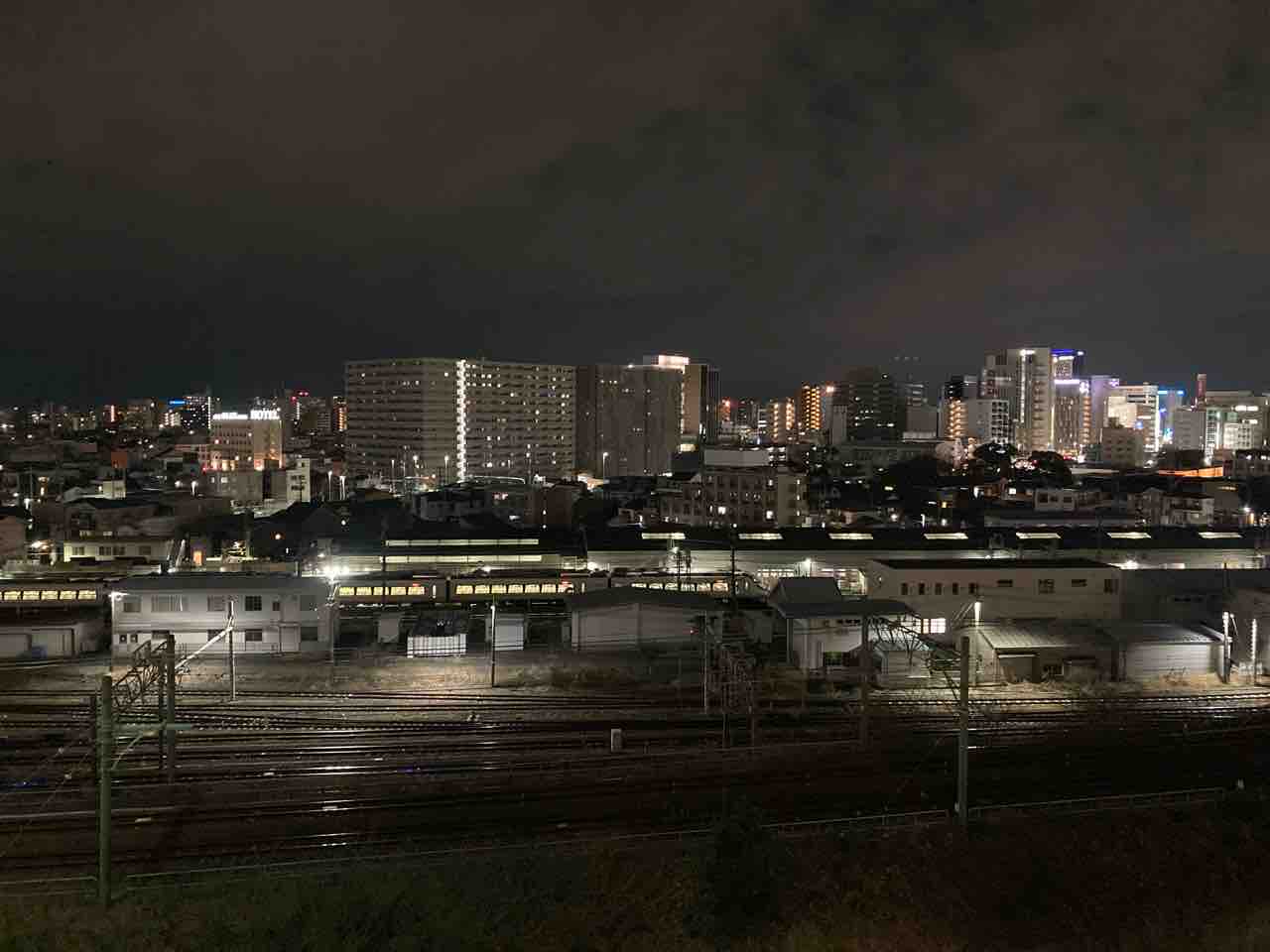 5 名古屋駅の夜景と走行する電車を展望