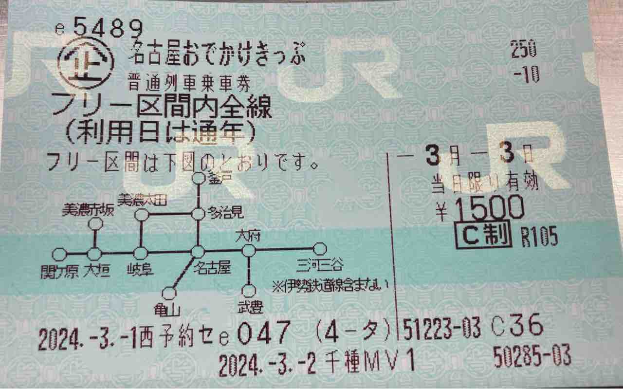 (写真:『名古屋おでかけきっぷ』(1,500円))