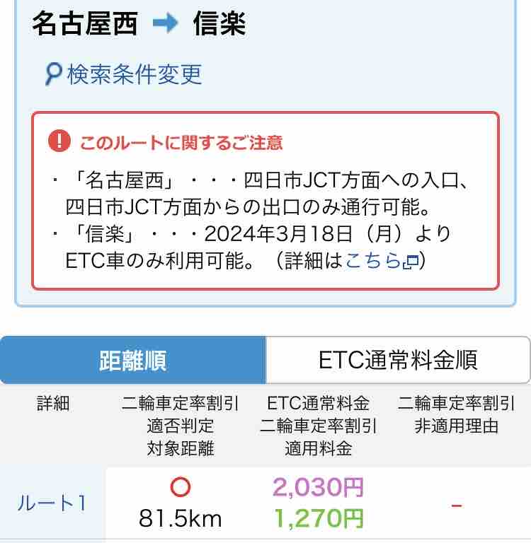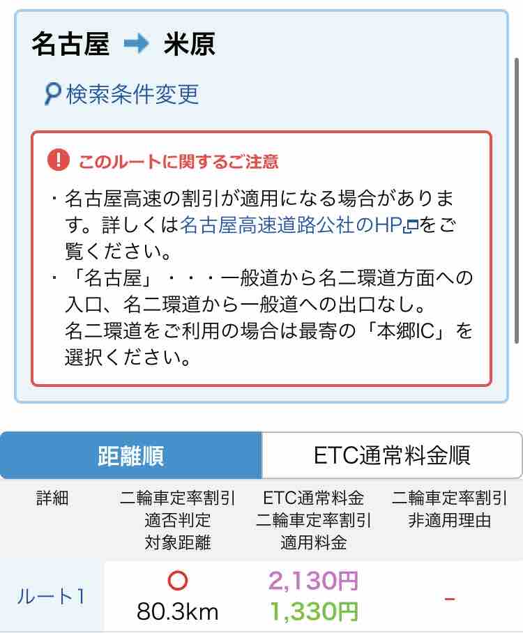 ETCの通常料金だと