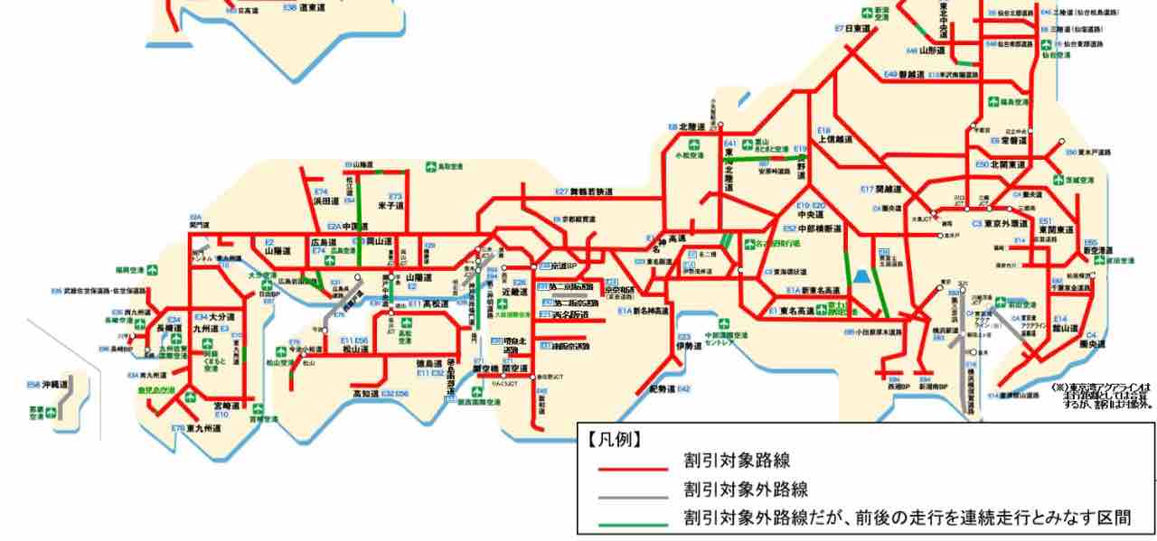 高速道路が割引の対象となります
