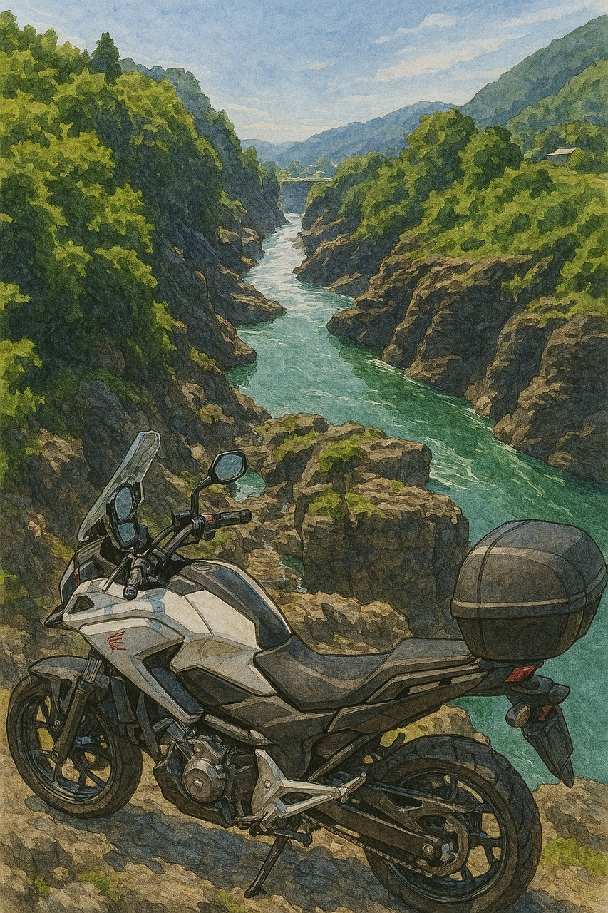 (イラスト:飛騨川の流れが作り出した景観『飛水峡』)
