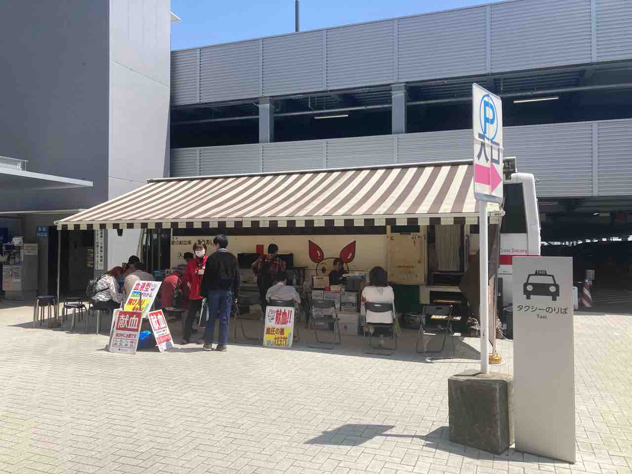 建屋の前では献血会が