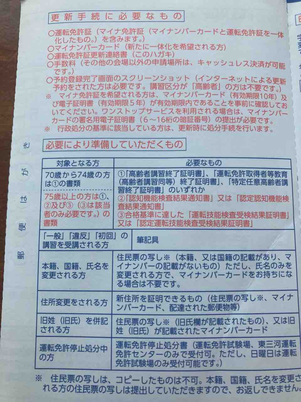 免許更新に必要なものが