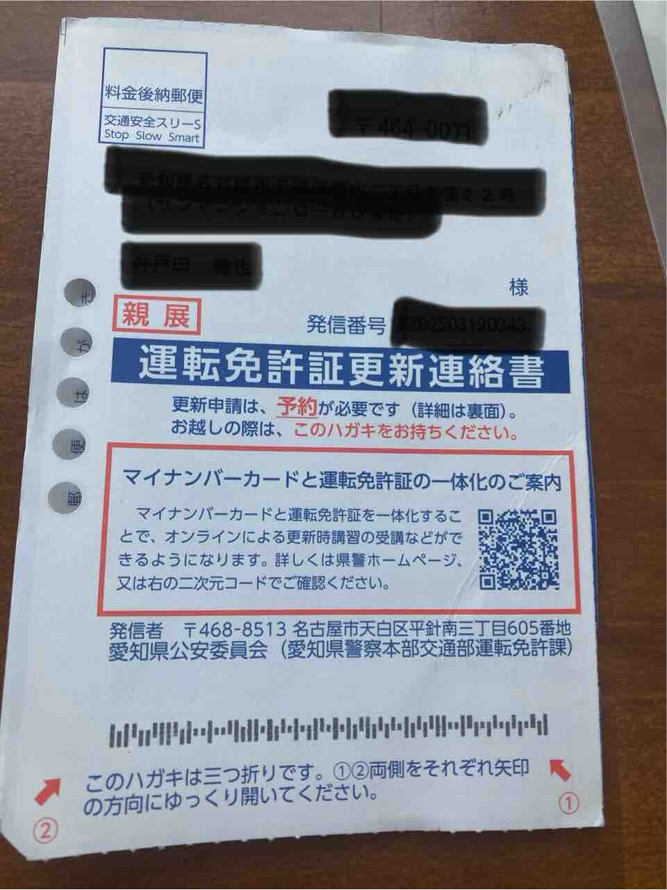 『運転免許更新連絡書』が
