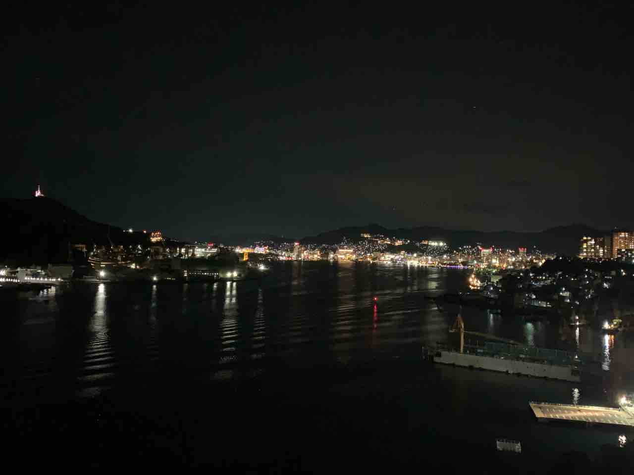 海面に映る街の光が揺れ、まるで宝石を散りばめたような眺めに。