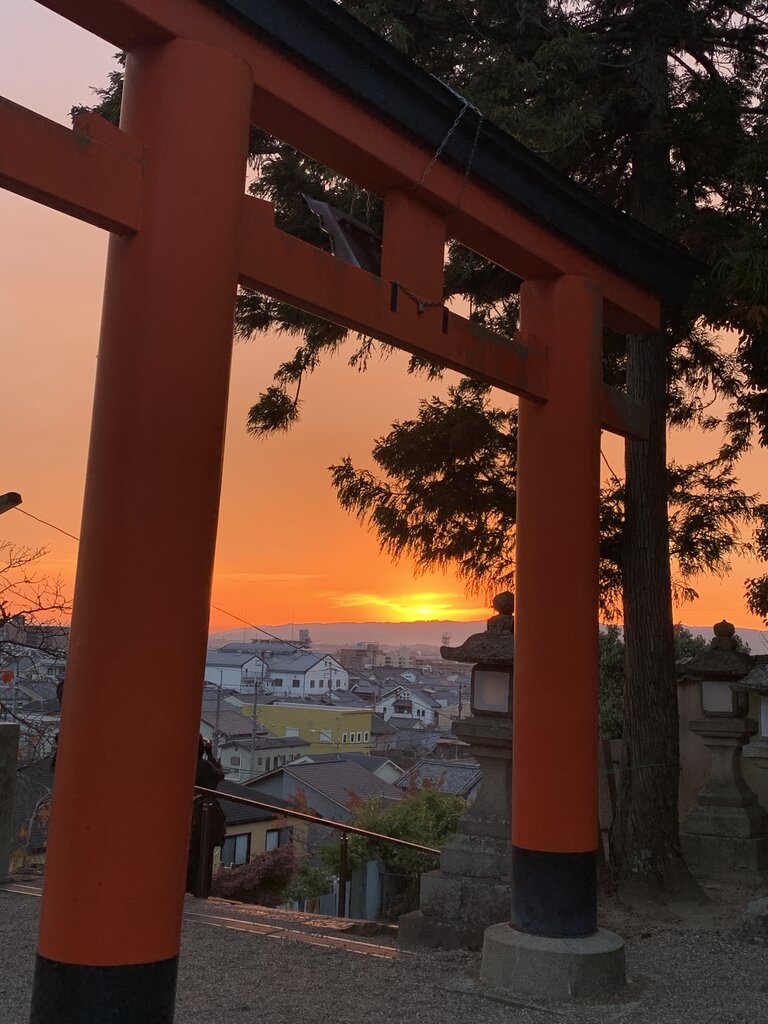 実際に訪れてみると、ちょうど夕暮れどきで、鳥居越しに沈む夕日がとにかく絶景。朱色の柱が黄金色に染まり、まるで絵のような光景が広がっていました。