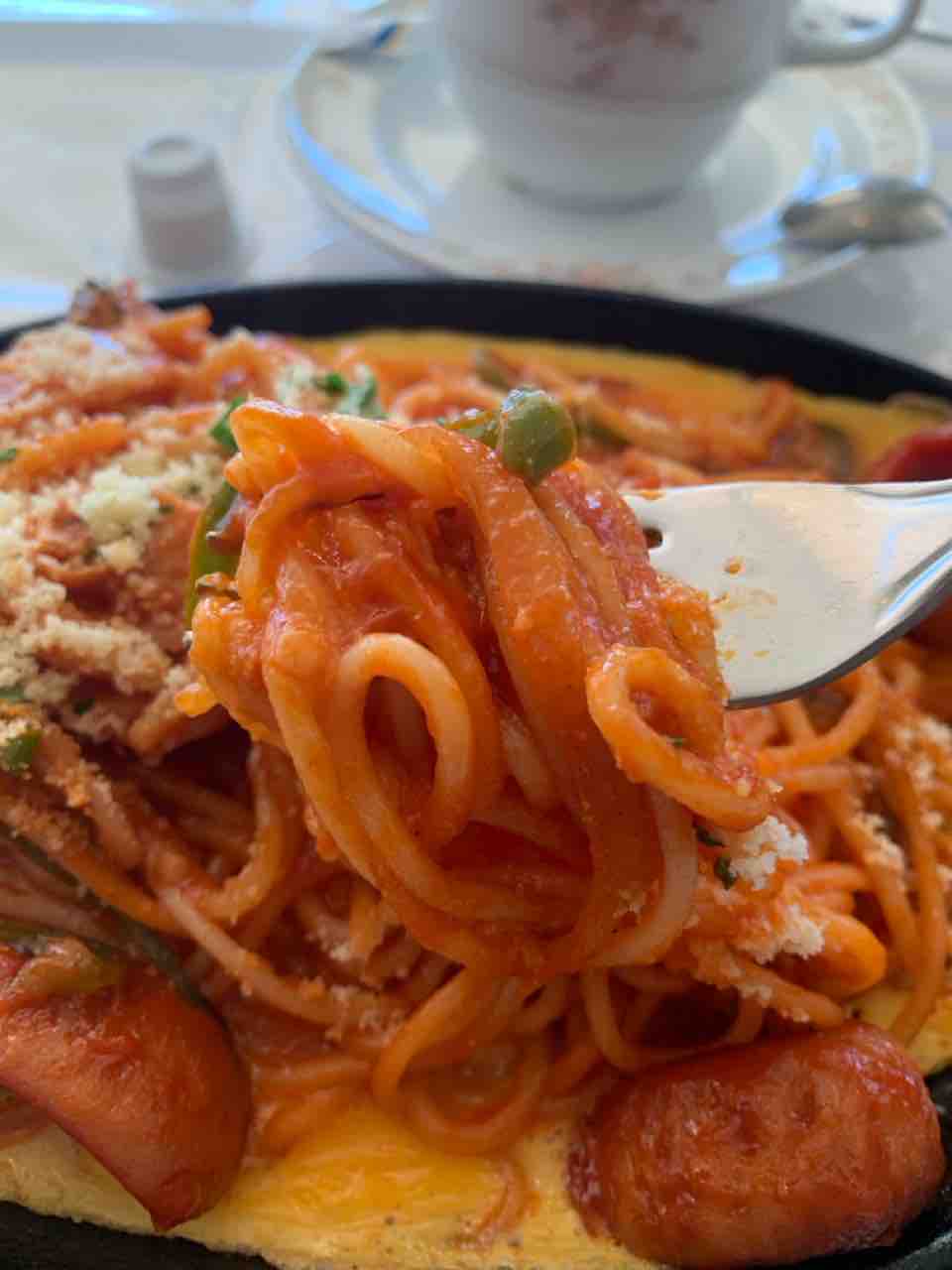 ソーセージ、ピーマン、玉ねぎなど懐かしい喫茶店の味が詰まっています。