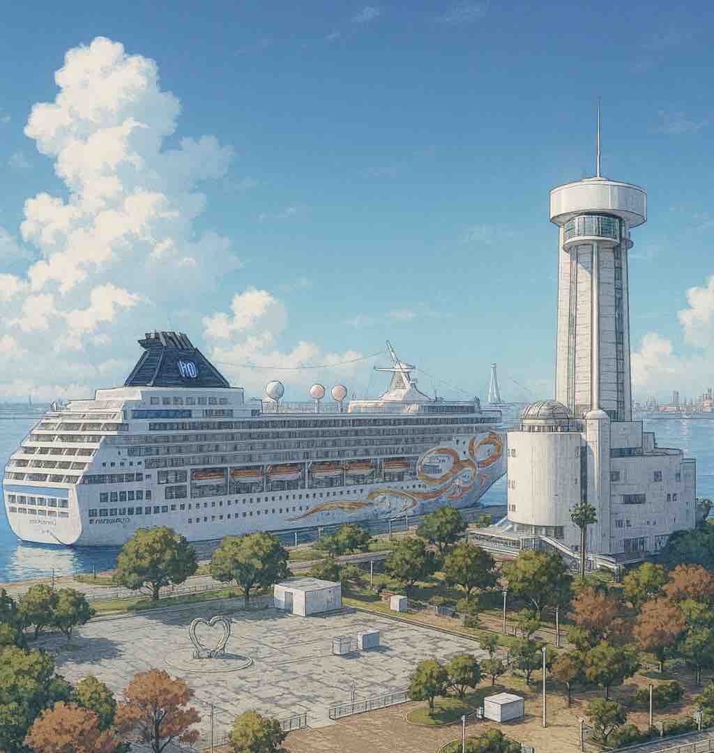 巨大クルーズ船が目の前に停泊している日には、まるで海外に来たかのようなスケール感。