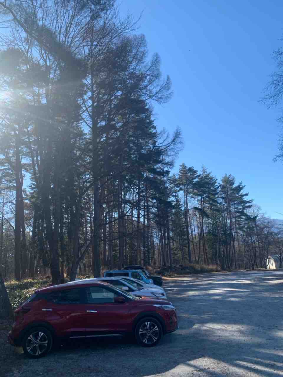 澄んだ青空と、うっすらと雪をかぶった八ヶ岳の峰々を眺めながらの快適なドライブです。