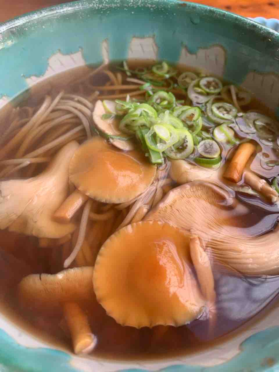運ばれてきたきのこそばは、器いっぱいに色とりどりのきのこがごろごろ。