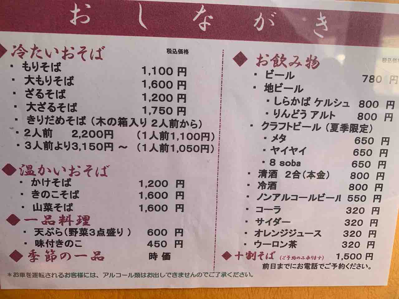 メニューはもりそば、ざるそば、大もりなどの定番に加え、 かけそばや山菜そば、きのこそばといった温かいおそばも充実。