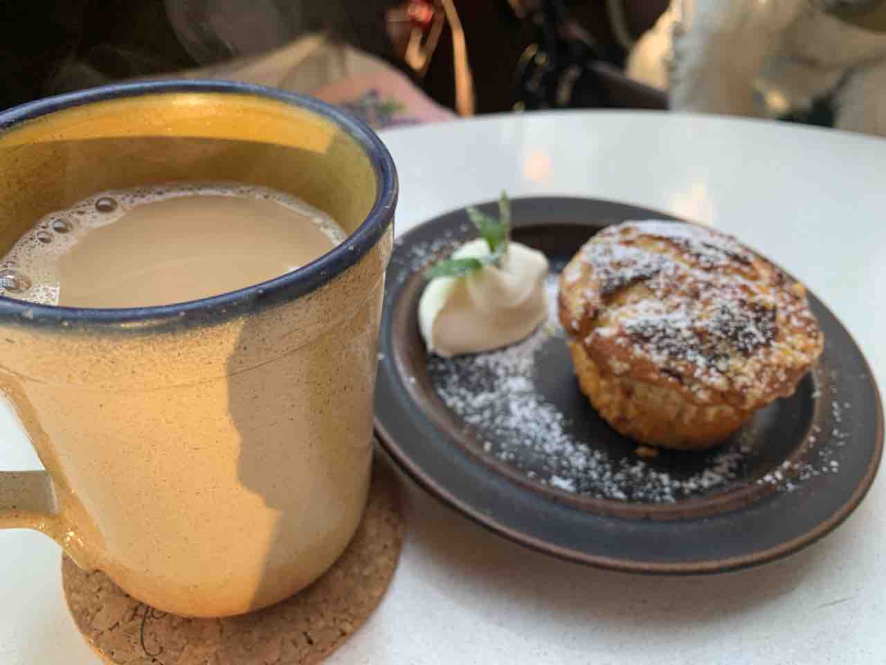 併設のカフェで温かい飲み物をいただきながら一服。