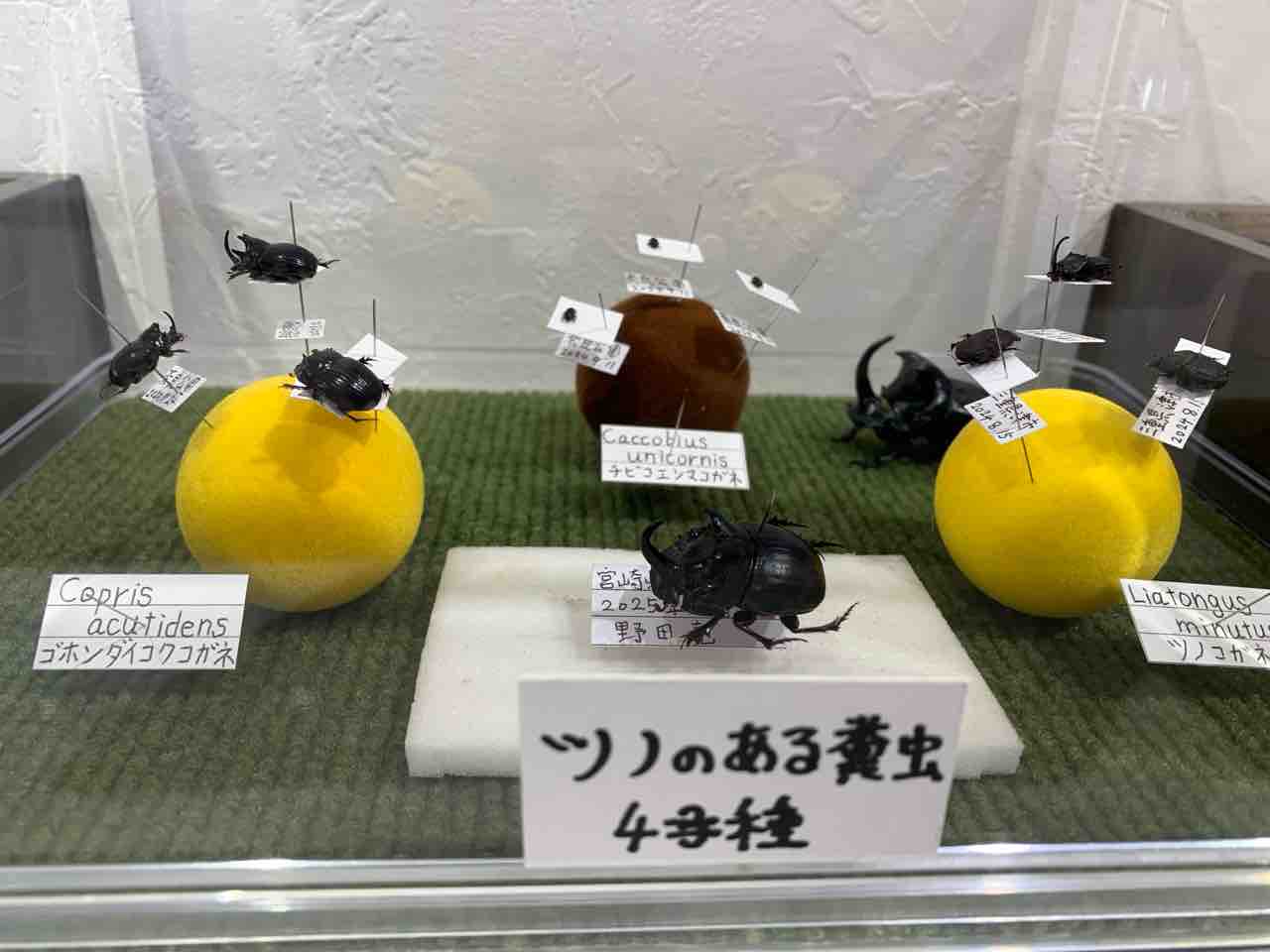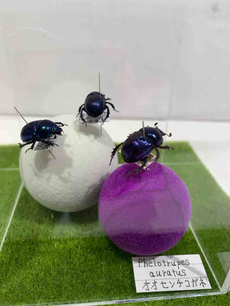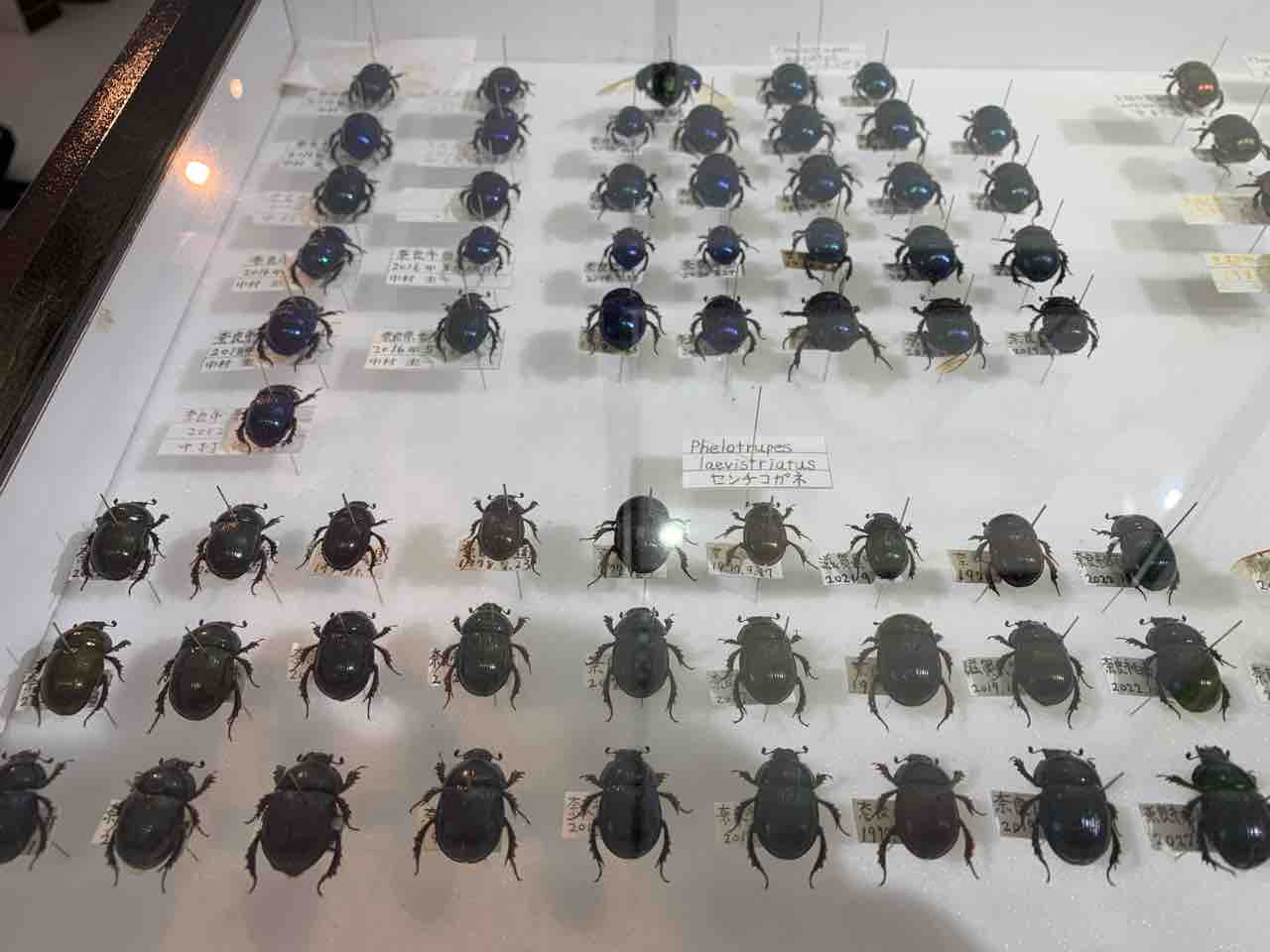 特に印象的だったのは、鹿のフンを転がすフンコロガシの姿、そして宝石のように輝くルリセンチコガネ。 その色は“色素”ではなく“構造色”という光の反射で生まれているという科学的な美しさも知ることができます。