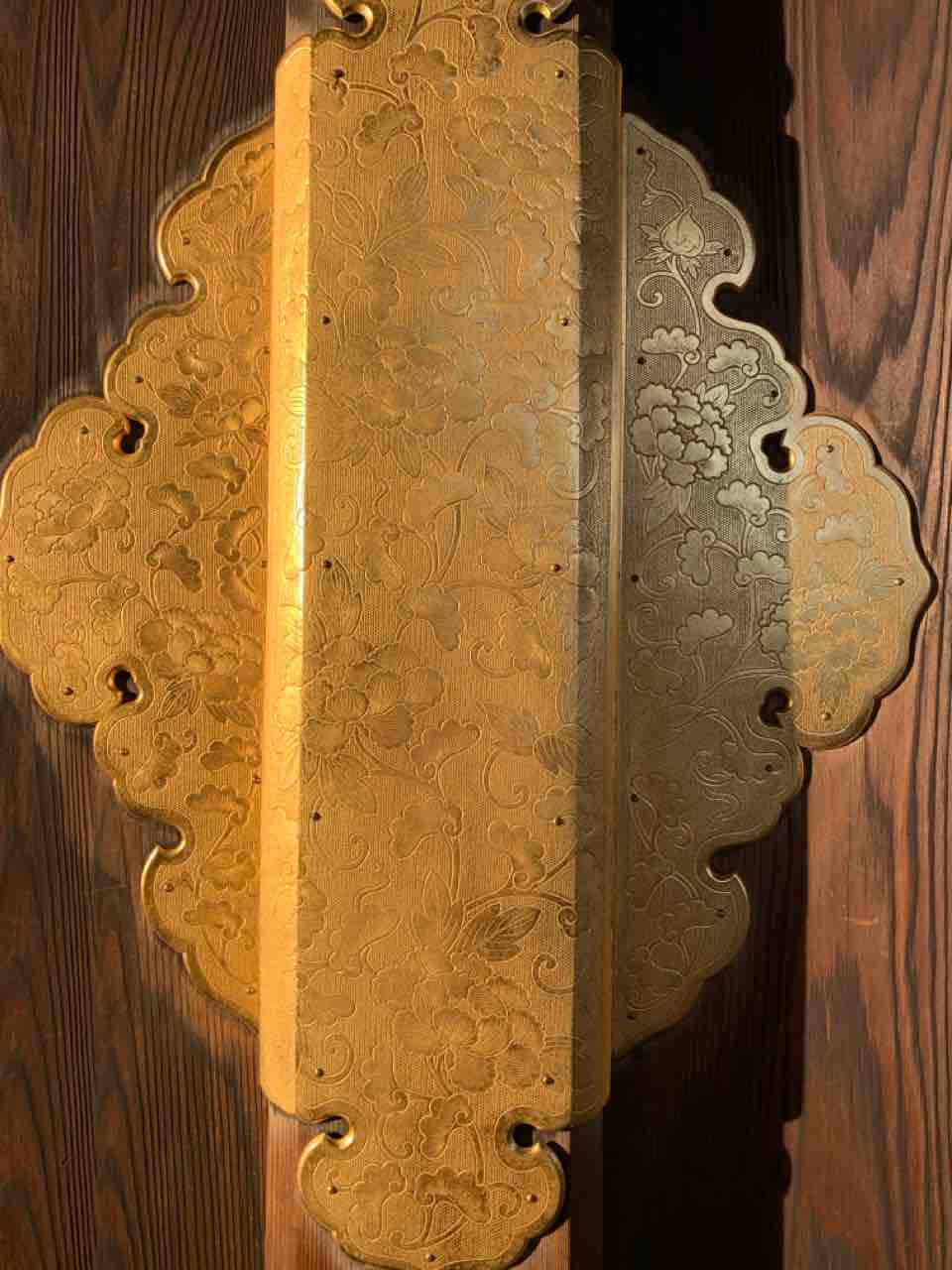 ふと目を留めると、扉や柱に取り付けられた金具の美しさに気づきます。
