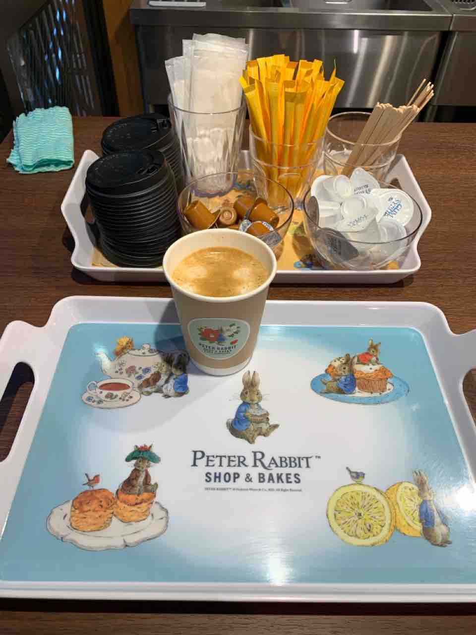 カップやトレイにもピーターラビットのイラストがあしらわれ、