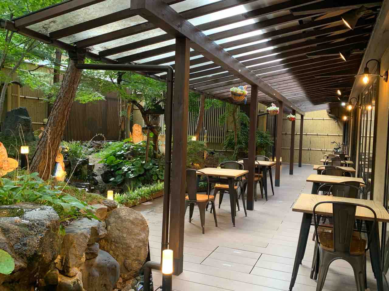 店内奥には、日本庭園を思わせる落ち着いた中庭があります。
