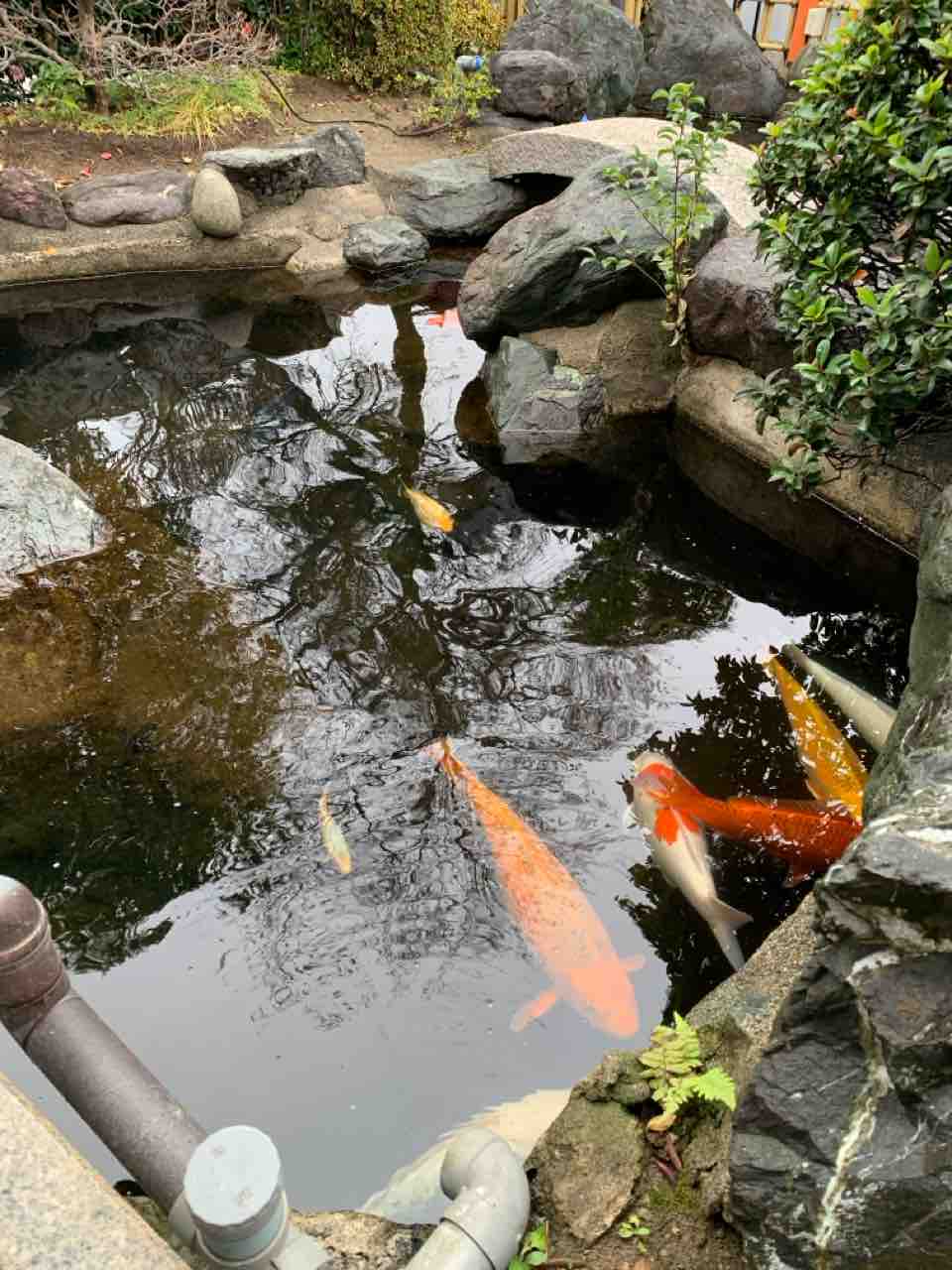 境内の一角には池があり、鯉がゆったりと泳いでいます。