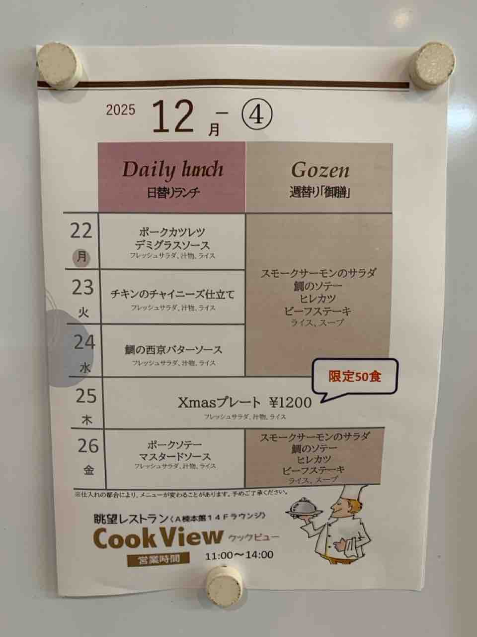 CookViewのランチは、月替わり・週替わりで内容が変わります。