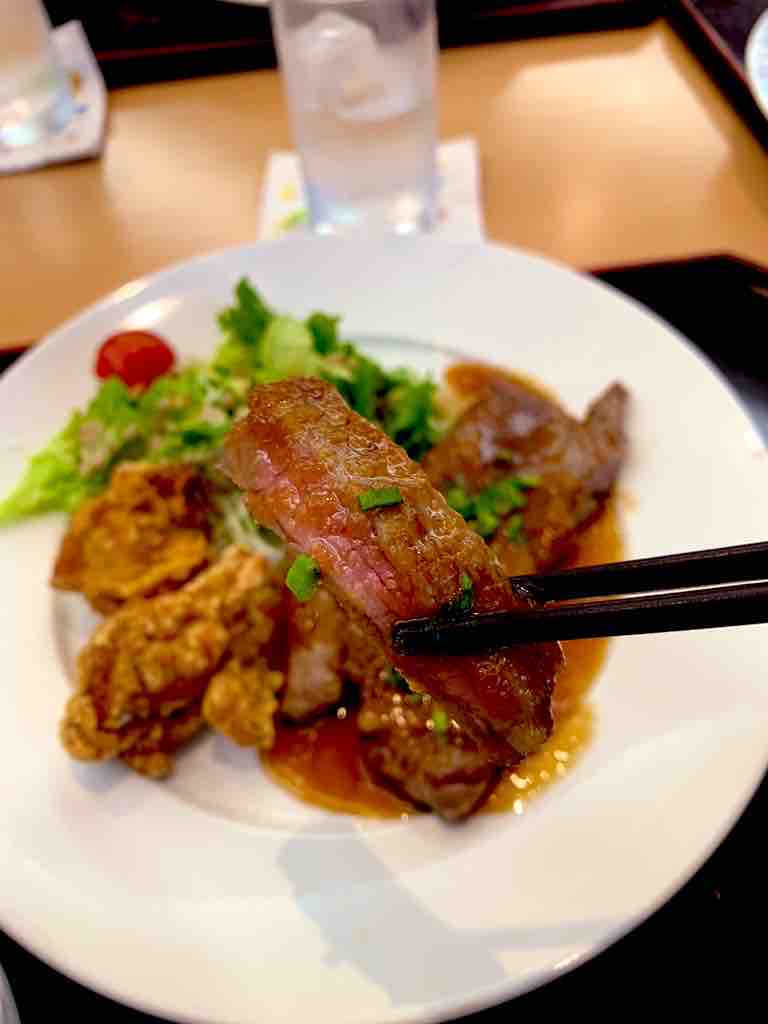 ステーキはほどよい火入れで柔らかく、