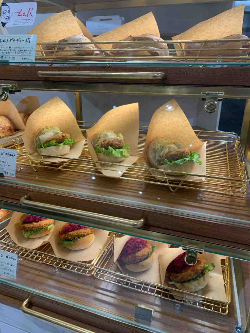 ショーケースには、コロッケやカツを挟んだ惣菜系バーガーが