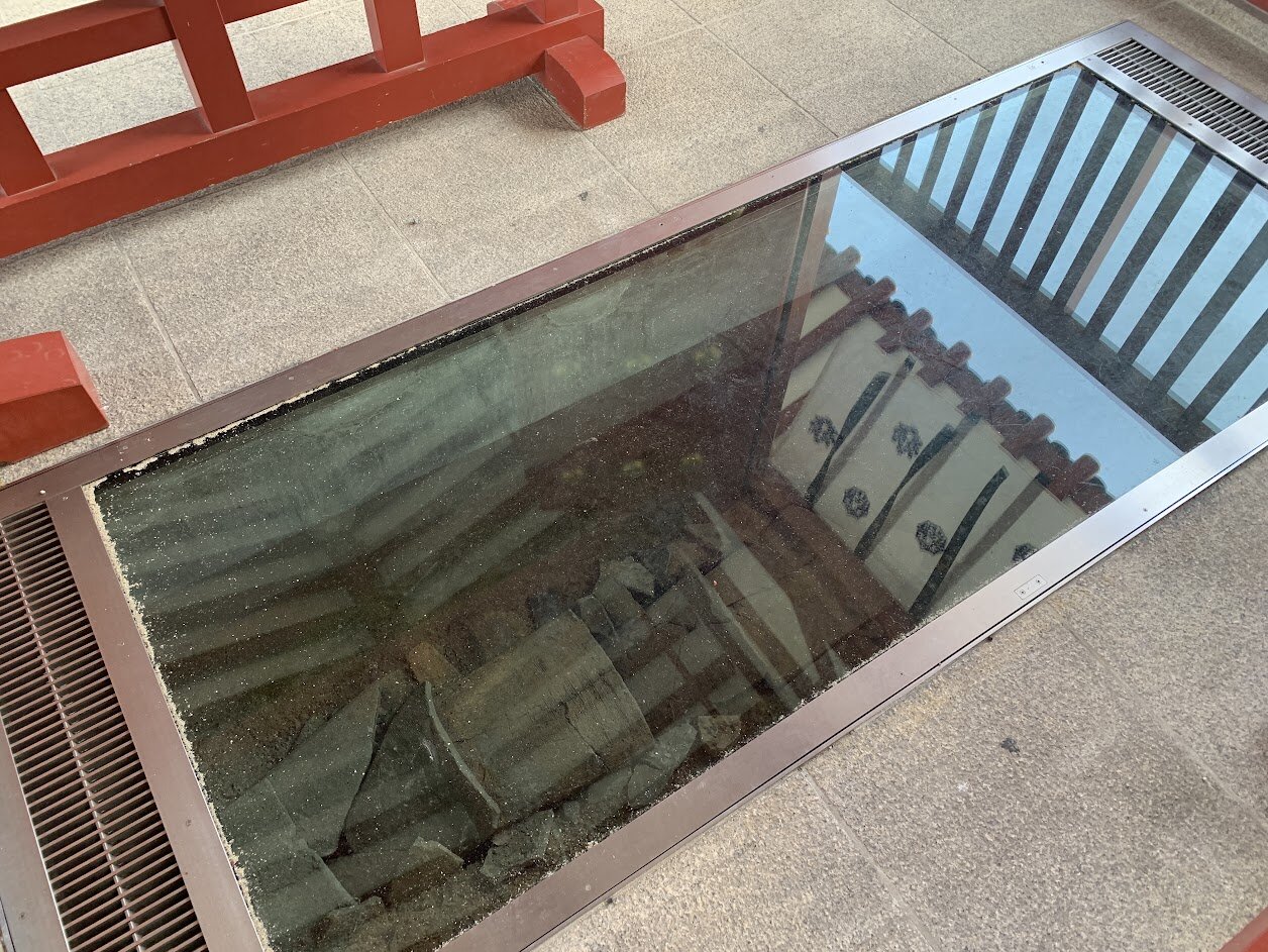 、回廊の足元にガラス越しでのぞける遺構が現れます。