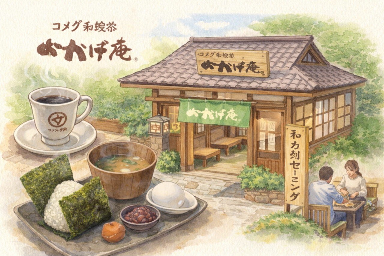 おかげ庵は、名古屋発の喫茶チェーンコメダが展開する和喫茶ブランド。 コメダらしい「長居歓迎」の空気感はそのままに、 メニューは和食・和スイーツ・和ドリンクが中心です。