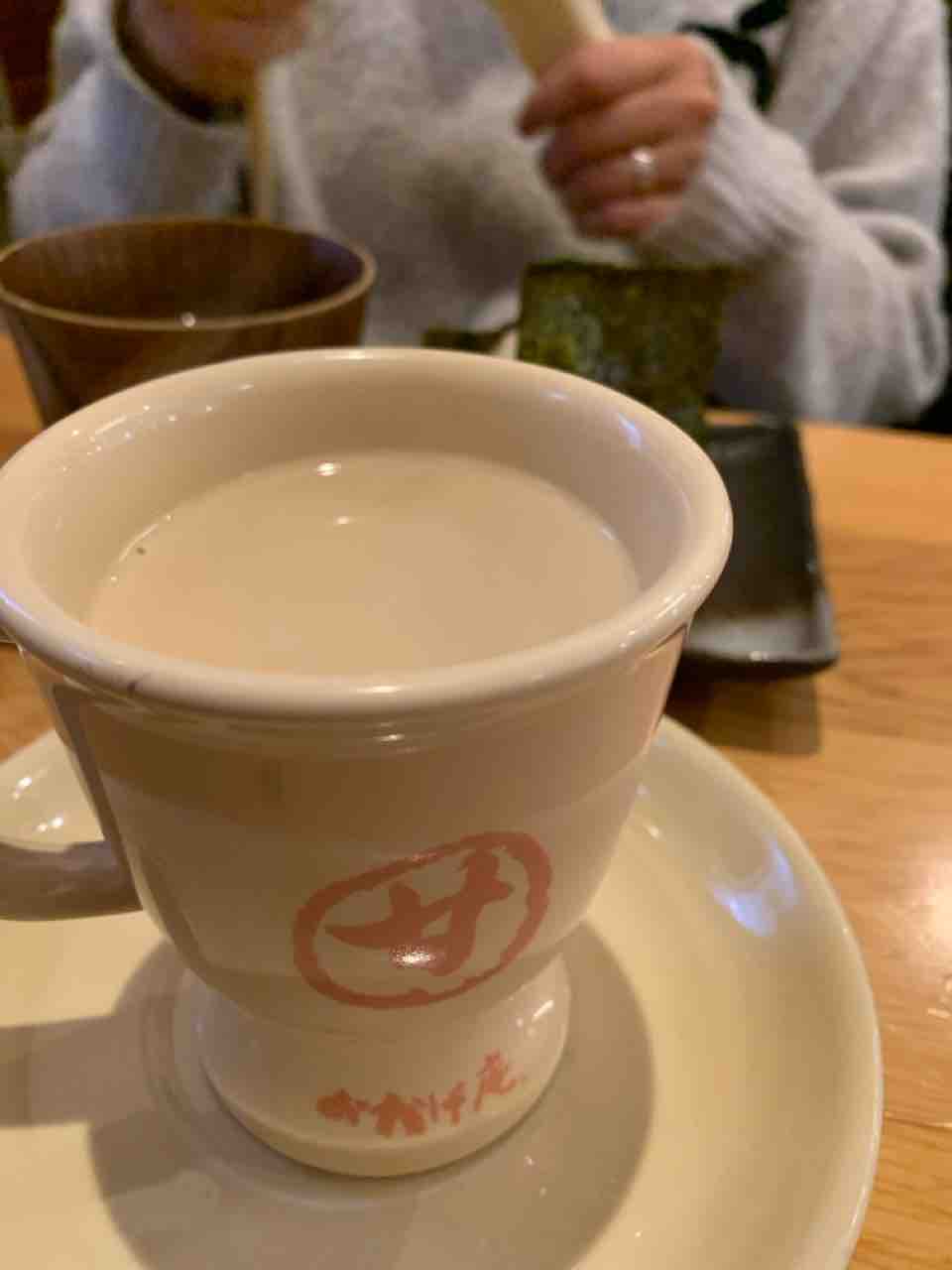 妻の人の一杯は、白くてやさしい口当たりのホットドリンク。 朝の身体にすっと入ってくる感じで、 和のモーニングと相性抜群でした。