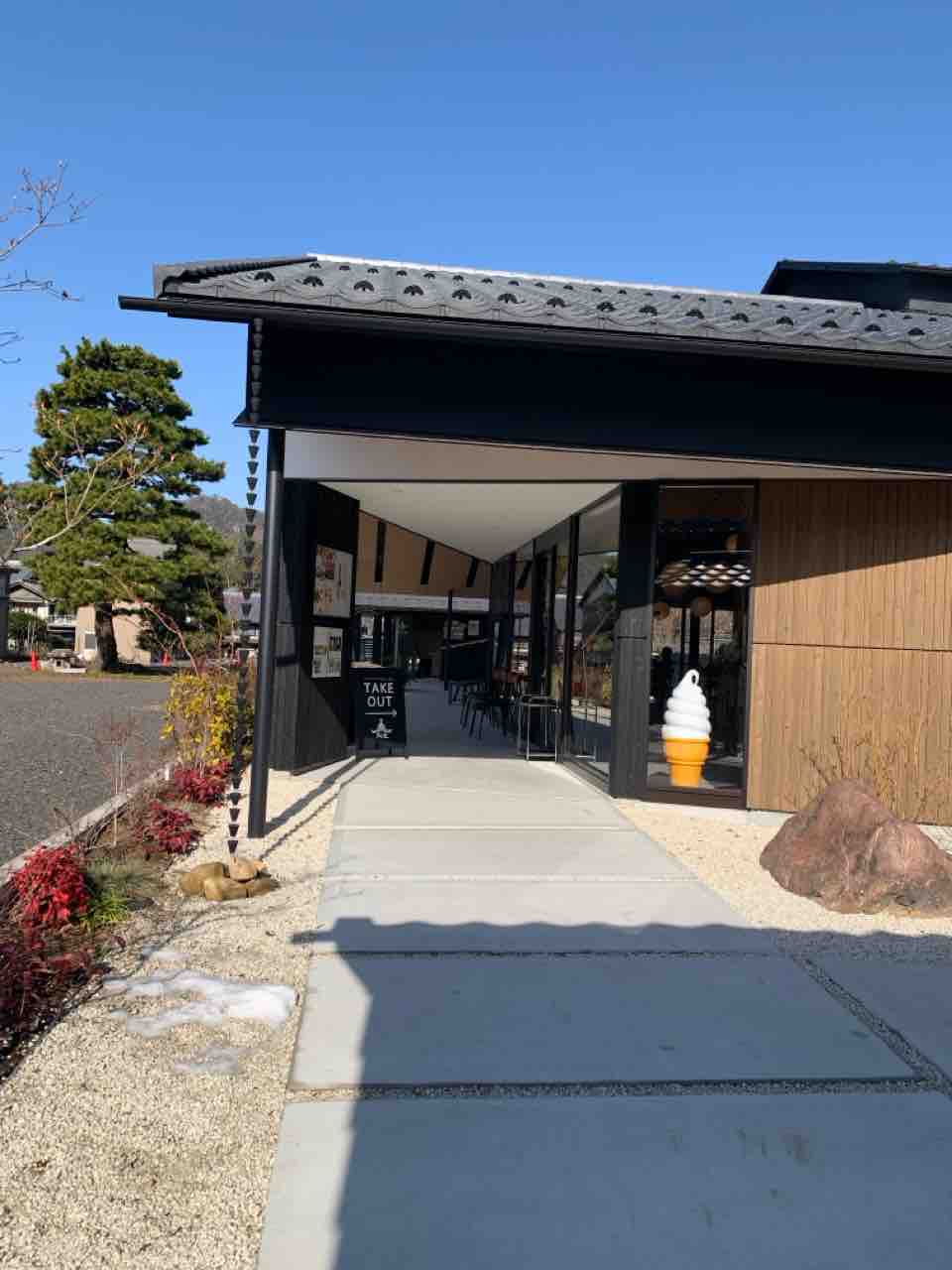 白い暖簾に描かれたロゴが印象的で、町並みに自然と溶け込んでいます。
