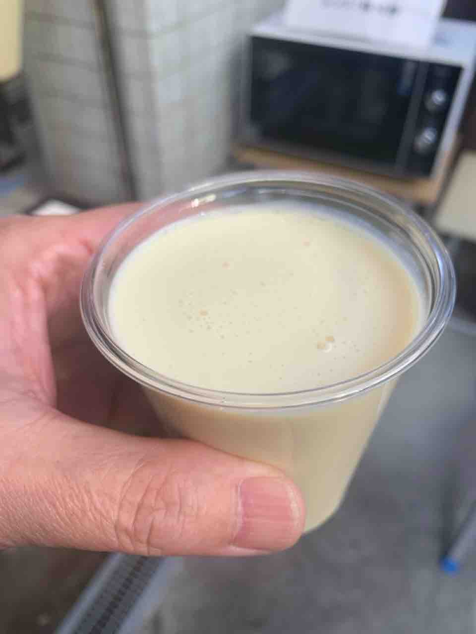 店先で販売されている豆乳をいただきましたが、 とにかく濃い。 大豆の旨みがしっかり感じられ、甘みも自然。 希望すればレンジで温めてもらえるのも嬉しいポイントです。