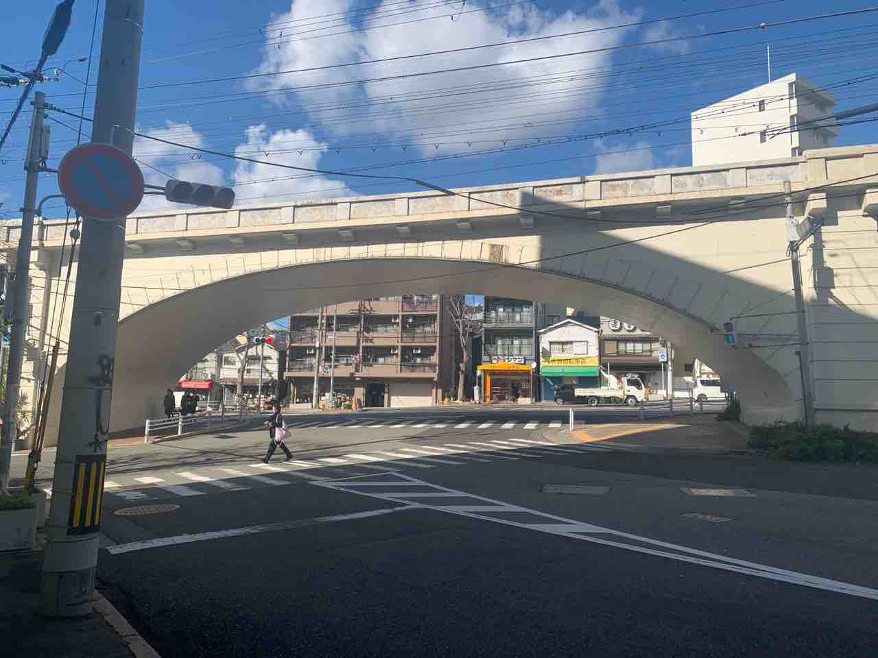 次の目的地「かすがの坂商店街」へ向かう途中、 阪急沿線の街並みをぶらぶら散策。