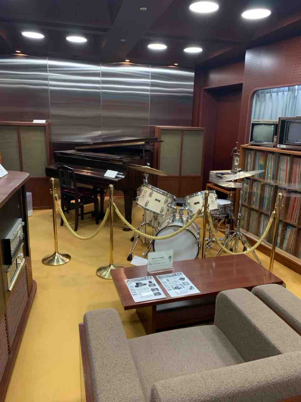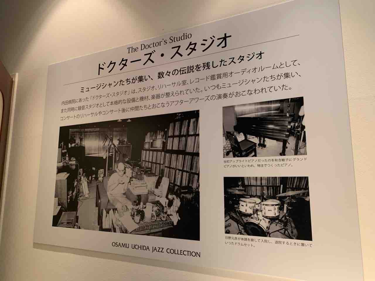 ガラスケースに並ぶ資料群だけでなく、「ドクターズ・スタジオ」の解説展示や、 ドラムセットなどの実物展示、そしてラウンジ的な空間まであって、ジャズ好きはもちろん “ちょっと興味ある”くらいでも十分楽しめる内容でした。