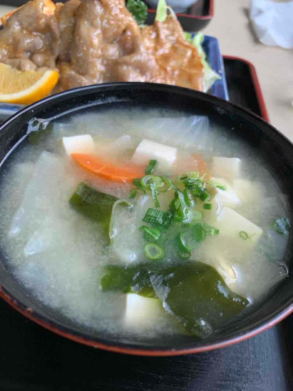 味噌汁も具だくさんで、豆腐・わかめ・野菜がしっかり。