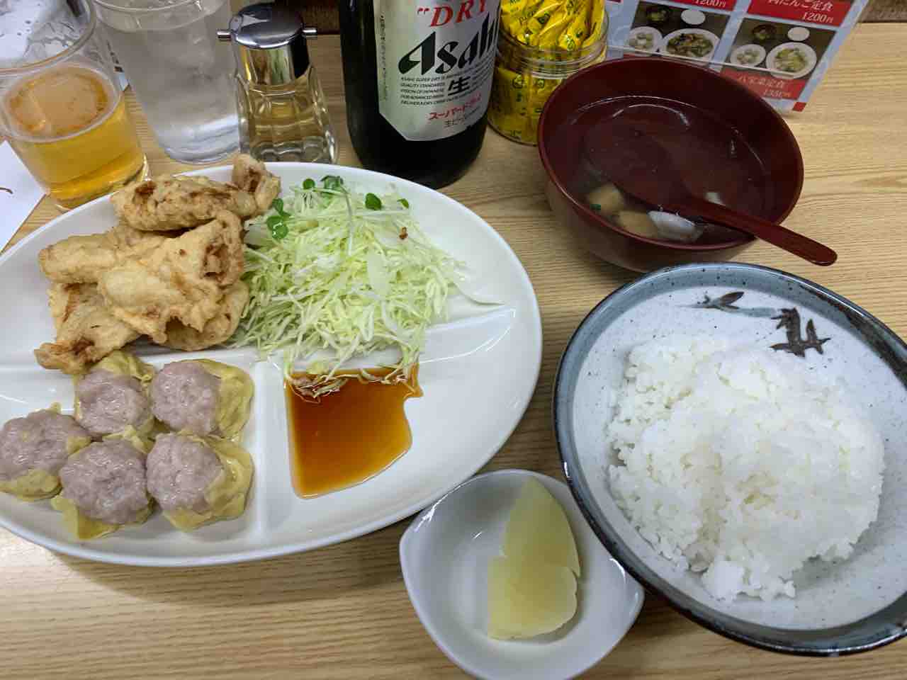 豚天や焼卖のような力強い料理には、やはりビールがよく合います。 昼どきでも一杯楽しめる雰囲気で、 定食にビールを添えると満足度がさらに高まります。