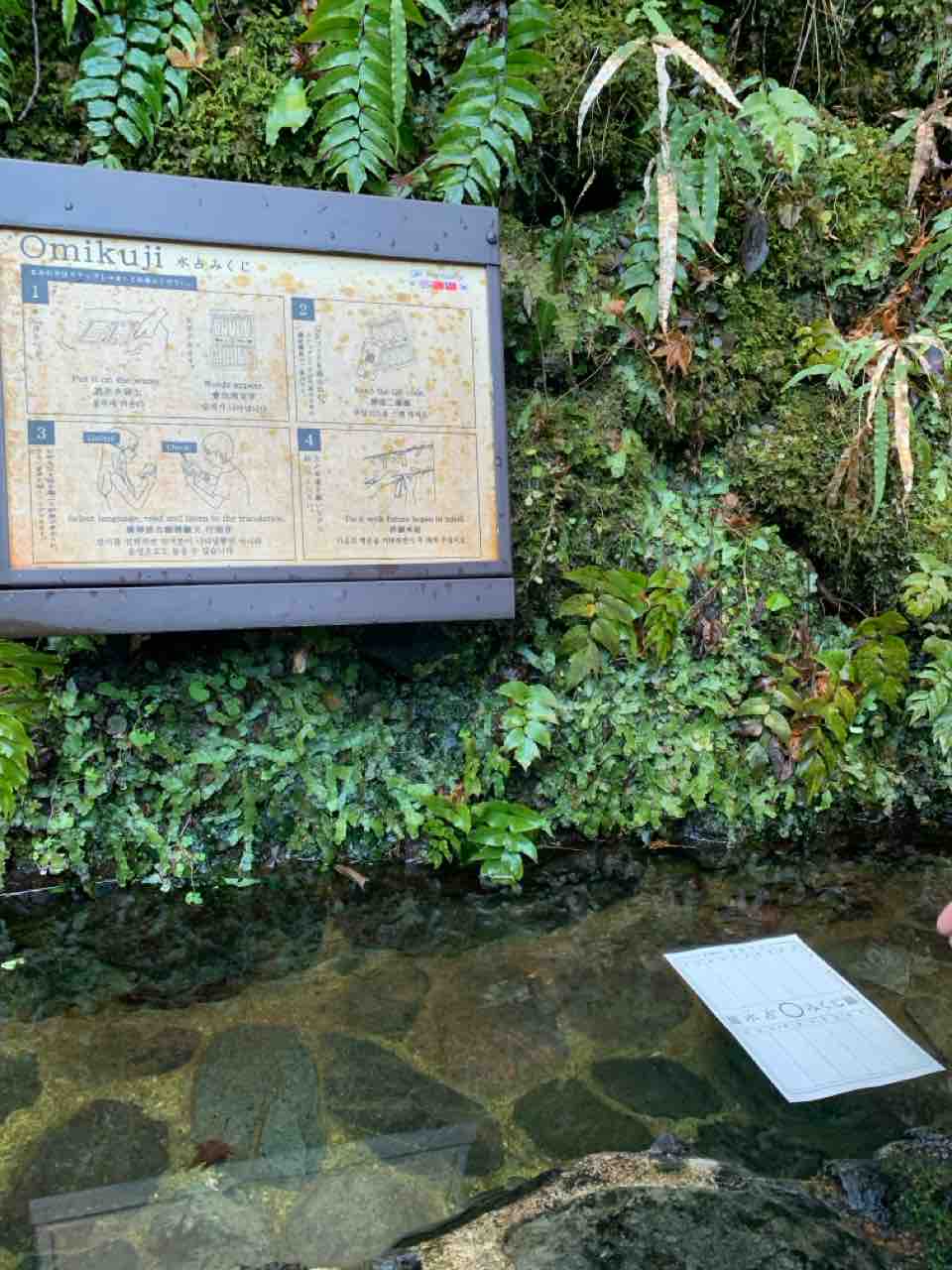 お決まりの水みくじを引き、そして歩いて奥宮へ――。