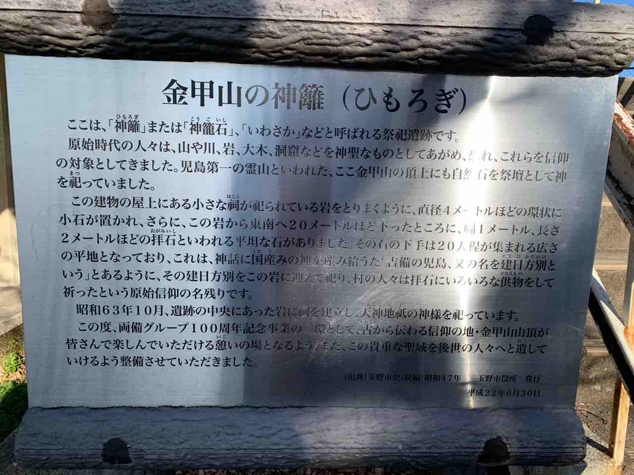 山頂には「金甲山の神籬(ひもろぎ)」があり、