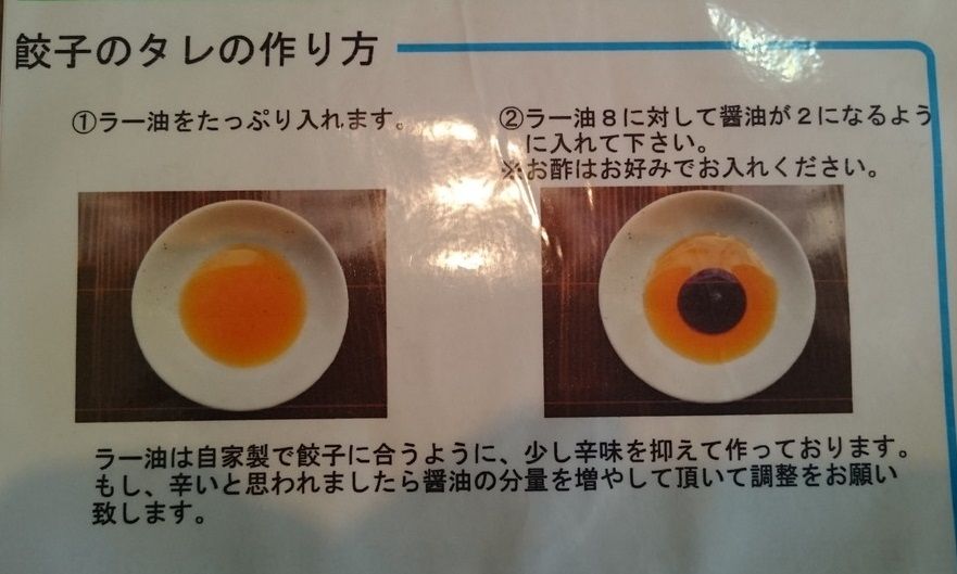 ▲➃オススメの食べ方は、たっぷりのラー油にすこし醤油を垂らして食べるというもの。ラー油はあまり辛くないものが使われております。