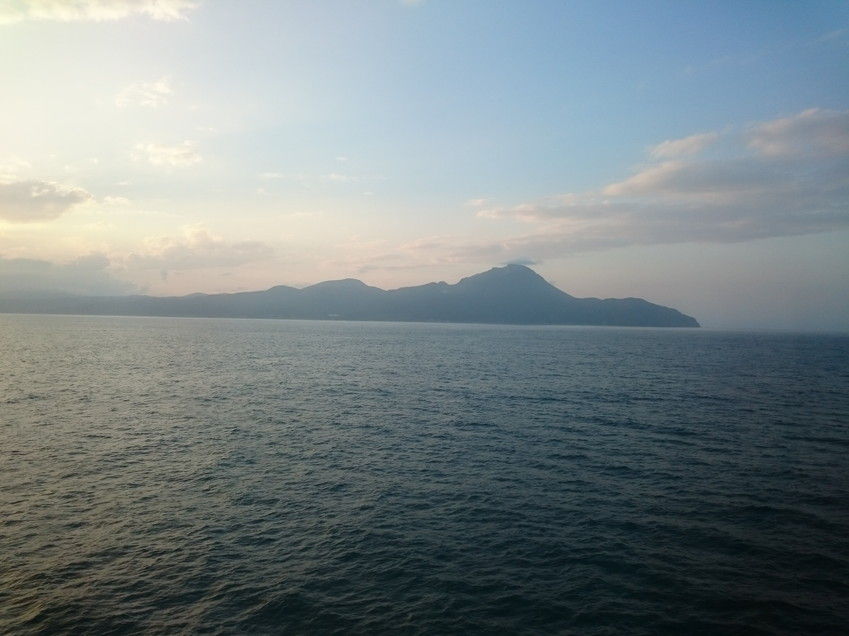 (写真:津軽海峡を通過。いよいよ北海道の大地が見えてきました。)